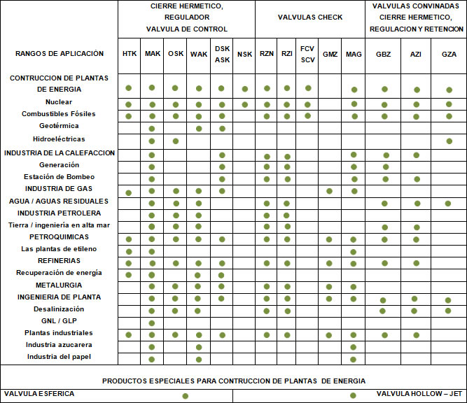 Válvulas Check son exclusivamente instaladas a la salida de las turbinas de vapor. Estas válvulas de retención y cierre rápido deberán proteger la turbina de flujo de retorno de vapor o agua que pueda dañar seriamente las paletas de la turbina.