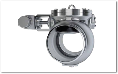 Las válvulas de seguridad son principalmente de acero soldadas con discos optimizado hidrodinámicamente, en diseños monoplano o Bi plano. Las válvulas se suministran con servomotores hidráulicos como el mecanismo de apertura y con contrapeso para obligarla a cerrar.
